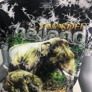 Thailand Women's Medium Elephant Print Tie Dye Crew Neck T Shirt "Land of Nature