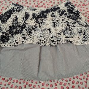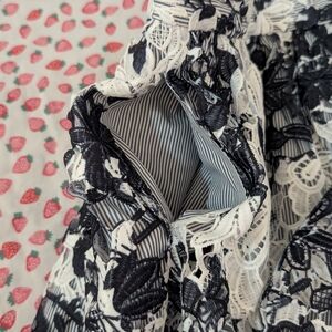 Super cute and ready to be worn! Create different looks with this lace beauty! It does have a solid later underneath and features pockets. Side zip and hook closure. New with tags.