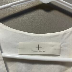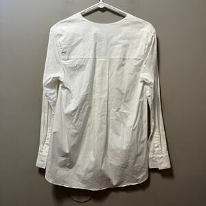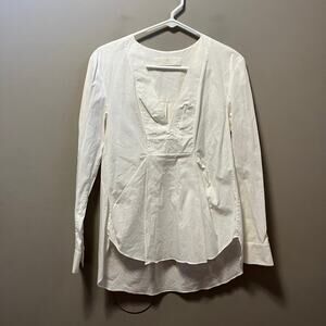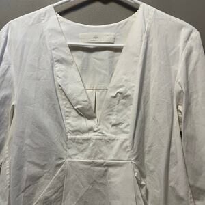 Thakoon Addition Stretch Cotton Top White V-Neck 2 Long Sleeve Pleats