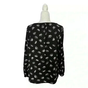 Thakoon Black Long Sleeve Tunic Blouse with Gray Crown Print Size S