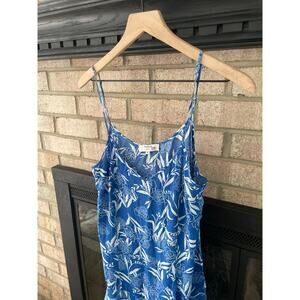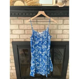 Blue mini slip dress with floral leaf print
