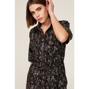 Thakoon Botanical Floral Print Cotton & Silk Utility Jumpsuit Black Size Medium