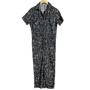 Thakoon Botanical Floral Print Cotton Silk Utility Jumpsuit Black Size Medium