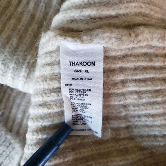 Thakoon Chunky Scarf Ribbed Knit Turtleneck Sweater Oatmeal Tan Size XL