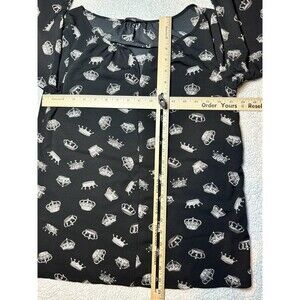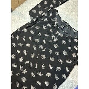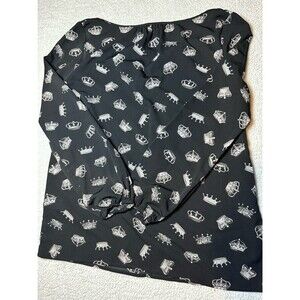 Thakoon Design Nation Top Womens Sz XS Black Crowns V Neck Long Sleeve Blouse