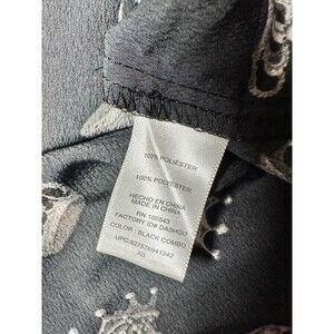 The Thakoon Design Nation Top for women in size XS features a stylish V-neck and long sleeves, with a unique geometric crown pattern in black. Made of polyester, this pullover blouse offers a classic fit and is machine washable, making it suitable for various occasions from casual to business. The blouse is designed by Thakoon and is perfect for all seasons, making it a versatile and fashionable addition to your wardrobe.