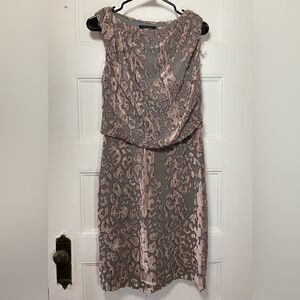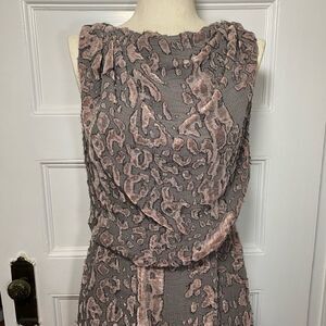 Thakoon | Draped Boatneck Sleeveless Animal Print Velvet Mini Dress Gray/Pink Size 4