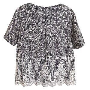 Thakoon Embroidered African Weave Print Top Sz 10 Comfy SS Cotton Black Multi