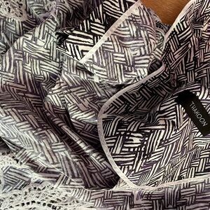 The black and white pattern with small touches of brown has a woven design that reminds me of African prints.