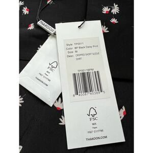 Thakoon Medium Black Daisy Print Short Sleeved Crop Button Down Collard Top NEW!