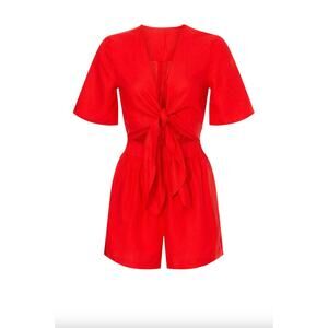 Paint the town red in this fiery tie-front linen romper by Thakoon Collective when you pair it with your favorite strappy heels.