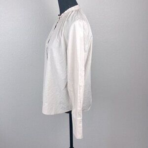 Thakoon Women's Cotton Blouse Ruffle Stand Collar Long Sleeves Cream Off-White Button Cuffs Neutral Designer Quiet Luxury