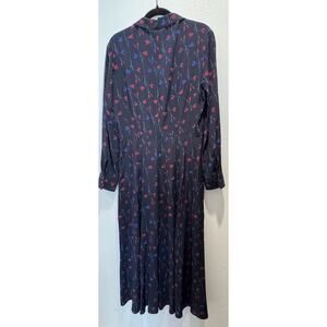 Thakoon Shirt Dress Women’s Size 10 Navy Print 100% Silk Midi Long Sleeve Tulip