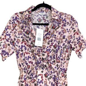 Thakoon Silk Cotton Tie Front Floral Midi Dress Size 4 NWT