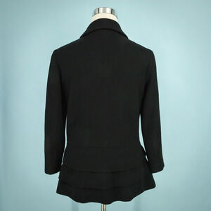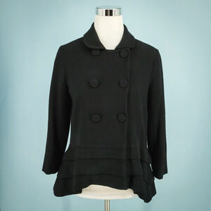 Thakoon Size 6 Black Double Breasted Button Front Down Layered Hem Long Sleeve Silk Lined 100% Wool Care Business Dress Blazer Jacket