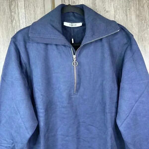 NWT Thakoon Sweatshirt Women Large Quarter Zip Navy Color Athletic Athleisure Cotton