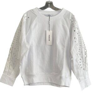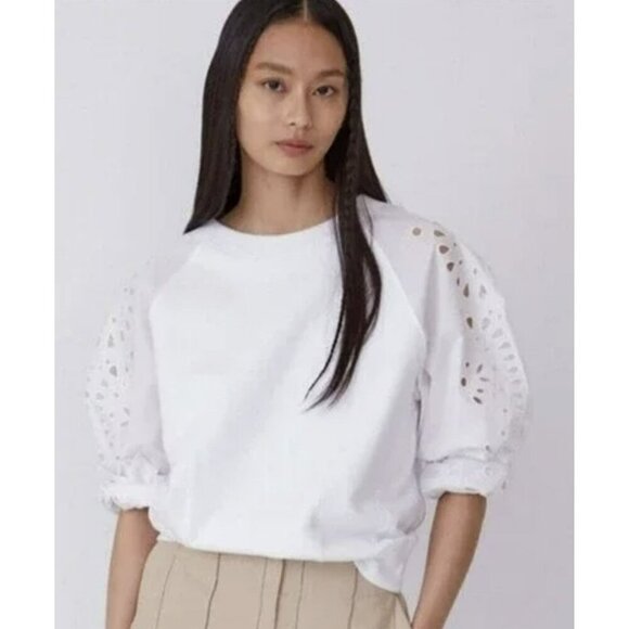 Thakoon White Embroidered Balloon Sleeve Sweatshirt Medium NEW