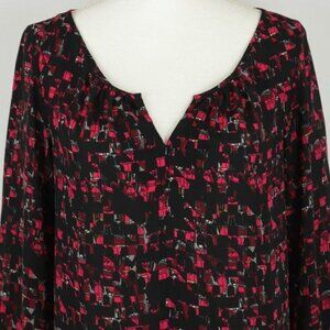 Thakoon Women's Extra Small Red Black Royal Guard Scoop Neck Long Sleeve Blouse