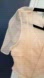 Chic sheer blouse with a soft peach hue. Features a tie-front detail. Ideal for stylish layering.