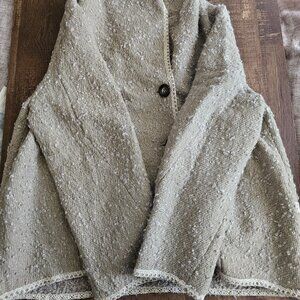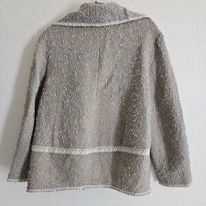 Thakoon Wool Mohair Alpaca Blend Double-Breasted Boucle Jacket Blazer, 6, Taupe