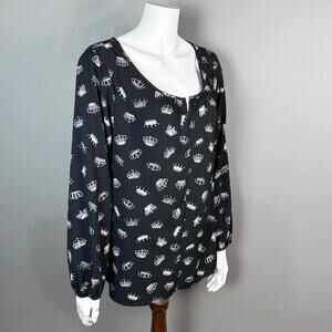 Thakoon for Design Nation top women's XL peasant royal crown punk black
