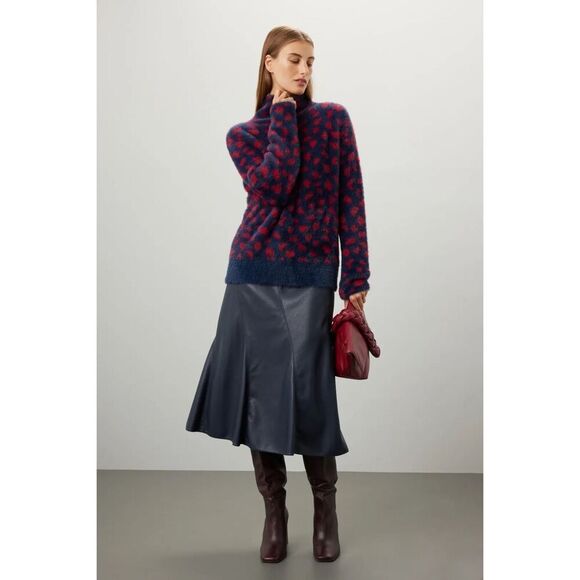 Thakoon Navy Red Printed Fuzzy Mock Neck Pullover 💙