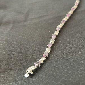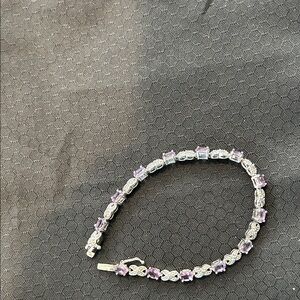 This elegant bracelet features a stunning combination of silver and purple stones, perfect for adding a touch of sophistication to any outfit.