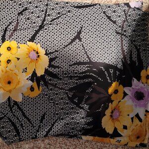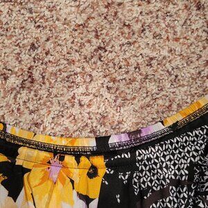 Floral Black White and yellow blouse. Black lining. Nylon lined tank top under.