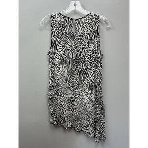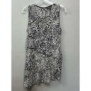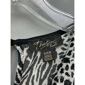Thalia Sodi Asymmetrical Sleeveless Ruffle Blouse Womens Small Black White Sheer