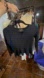 Chic black peplum sweater with long sleeves. Features a stylish neckline accent.