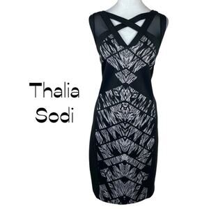 Thalia Sodi Black White Print Sheer Cutout Event Party Date Dress NWOT