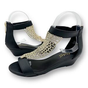 Thalia Sodi Black Tibby Gold/Crystal Mesh Embellished Wedge Open-Toe Sandals 5M