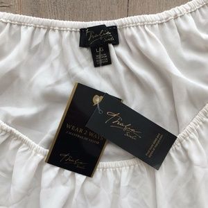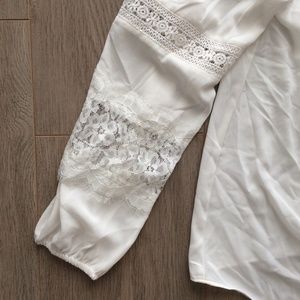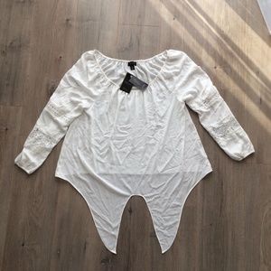 Thalia Sodi Boat Neck Lace Inset Tie Front Blouse