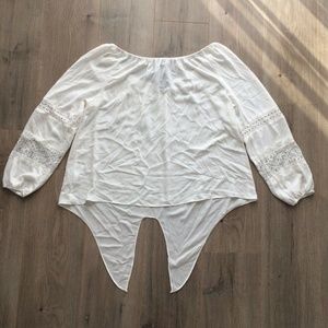 Thalia Sodi Boat Neck Lace Inset Tie Front Blouse