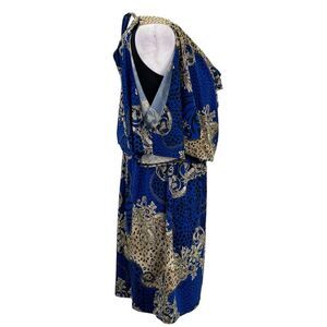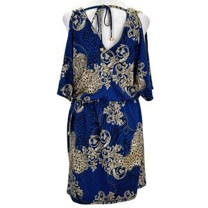 Thalia Sodi Chain Straps Cold Shoulder Stretch Waist Gold Grecian Size Med