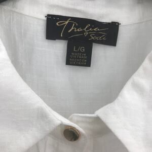 Thalia Sodi Front Button knot Tie Blouse Shirt Top Roll Tab Sleeves White Large