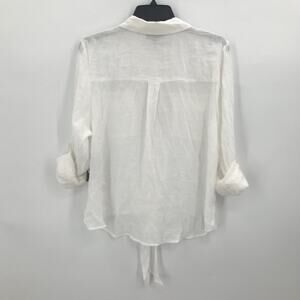 Thalia Sodi Front Button knotted Tie Blouse Shirt Top Roll Tab Sleeves White Large