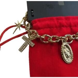 Thalia Sodi Gold Chain Charm Bracelet w/ Various Religious Charms, NWT