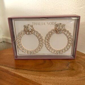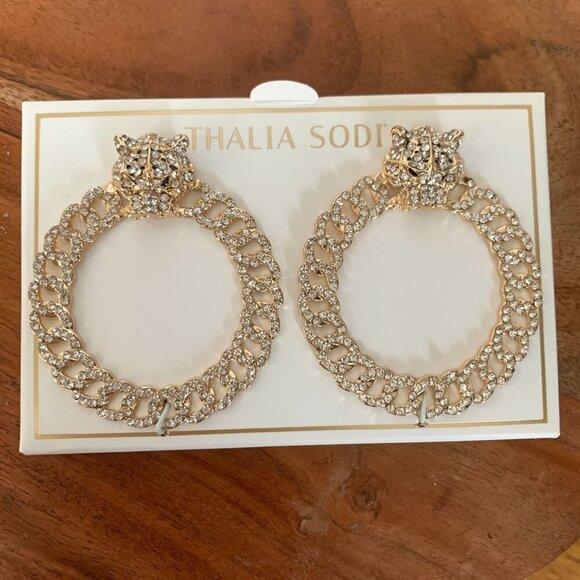 Thalia Sodi Gold Tone & Crystal Big Cat Hoop Earrings For Pierced Ears 3" NWT