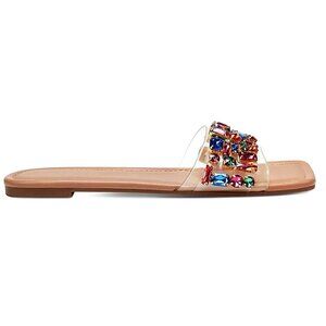 Thalia Sodi JILLENE Slide Square Toe Flats Sandals Clear/Multicolor Size 6.5