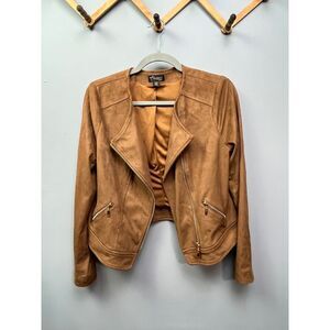 Thalia Sodi Jacket womens medium brown faux suede moto Lightweight Retro