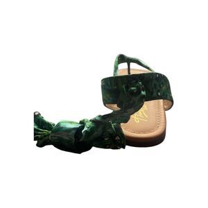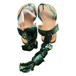 Thalia Sodi Joelyn Ankle Wrap Green Animal Print Sandals Size 6.5M New!