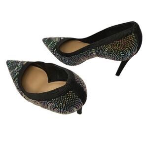 Reflective bling adds striking shine to these sleek, pointed-toe pumps by Thalia Sodi. Featuring a stylish 3-3/4" stiletto heel and all-over embellishments on the fabric upper. A dazzling shoe designed to elevate any evening or party look. Created for Macy's. Upper: Fabric; Sole: Man-made. Imported.
