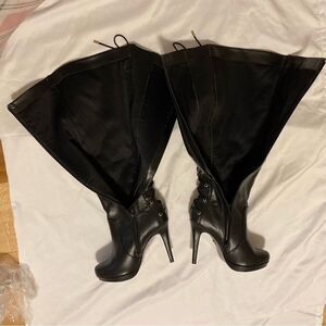 Thalia Sodi Lanee Black Knee High Leather Platform Lace-Up Boot NWOT Size 6.5
