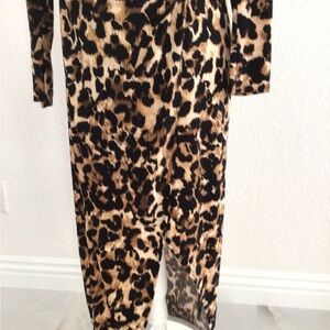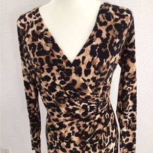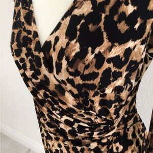 This dress is ideal for a night out, special occasion, or statement daytime look. Its stretchy, body-skimming fabric and classic animal print make it both comfortable and eye-catching.