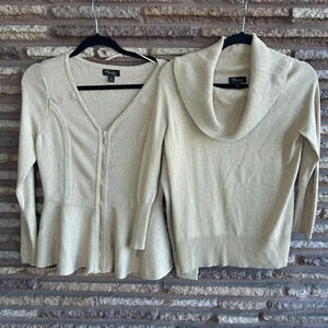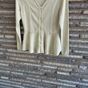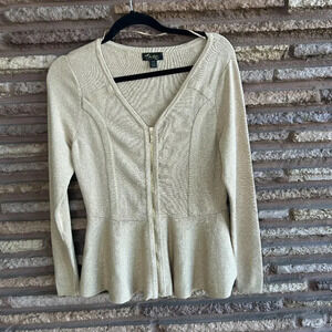 Thalia Sodi Metallic Gold Peplum V Neck Cardigan Sweater