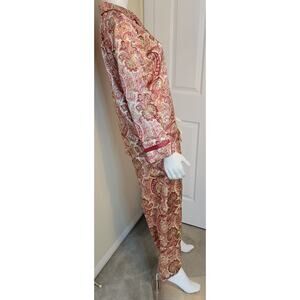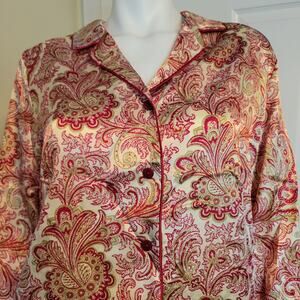 Thalia Sodi Satin Pajama Set Size M Golden Scroll Paisley Red Long Sleeve NWT