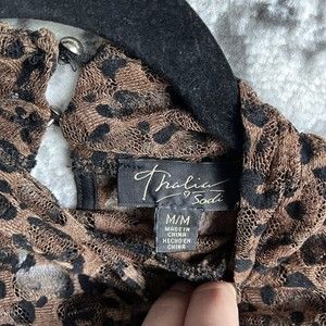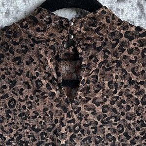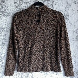 Thalia Sodi Sheer Animal Print Top Size M Stretch High Neck.