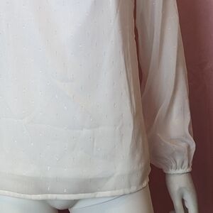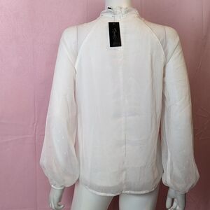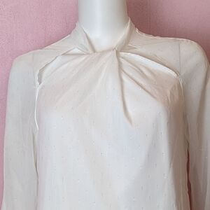 Thalia Sodi White Long Sleeve Metallic Shimmer Blouse with Cut Outs size XS