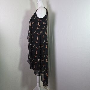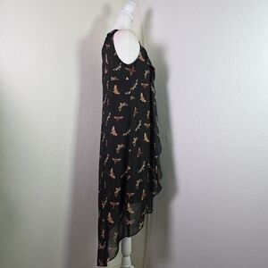 Thalia Sodi Womens Black Butterfly Print High Low Midi Dress Metallic Sheer Sz S